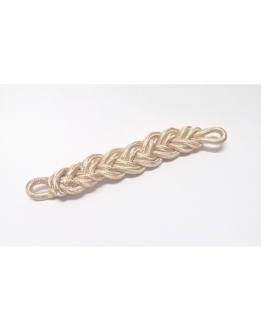 Botão pequeno, acabamento em dourado e lira em relevo. ..