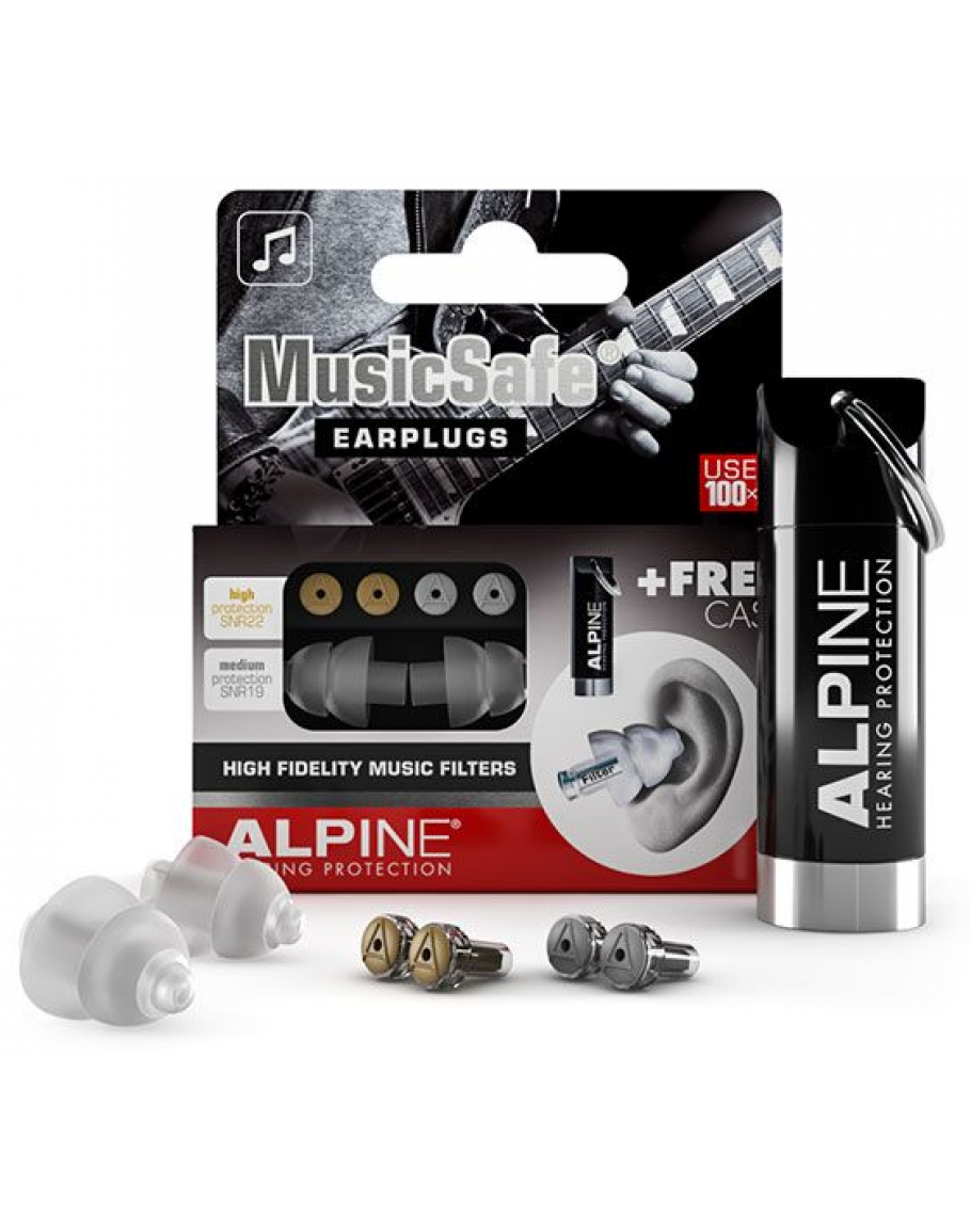 -Inclui 1 par de tampões MusicSafe Classic, 2 pares de filtros musicais (1 atenuação média + 1 atenuação alta) e 1 estojo de transporte tipo porta-chaves