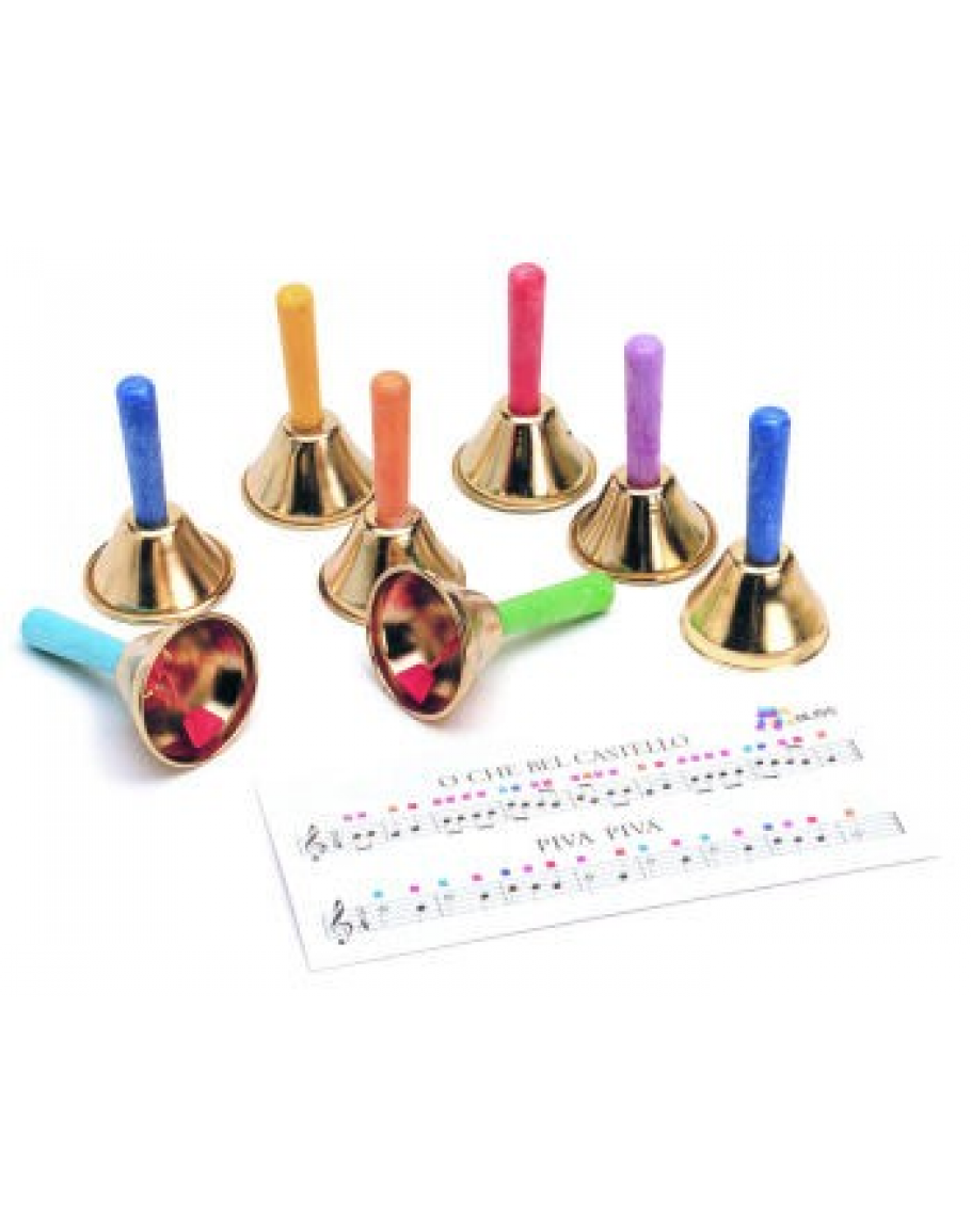 -Jogo de 8 sinos individuais com cabo colorido