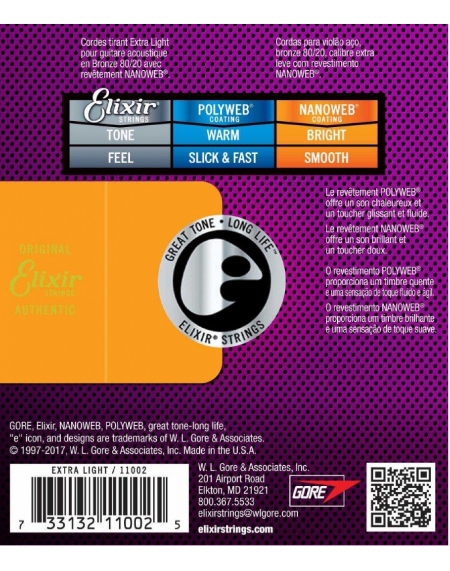 Jogo Cordas Guitarra Acústica 10|47 Elixir Nanoweb Extra Light 11002