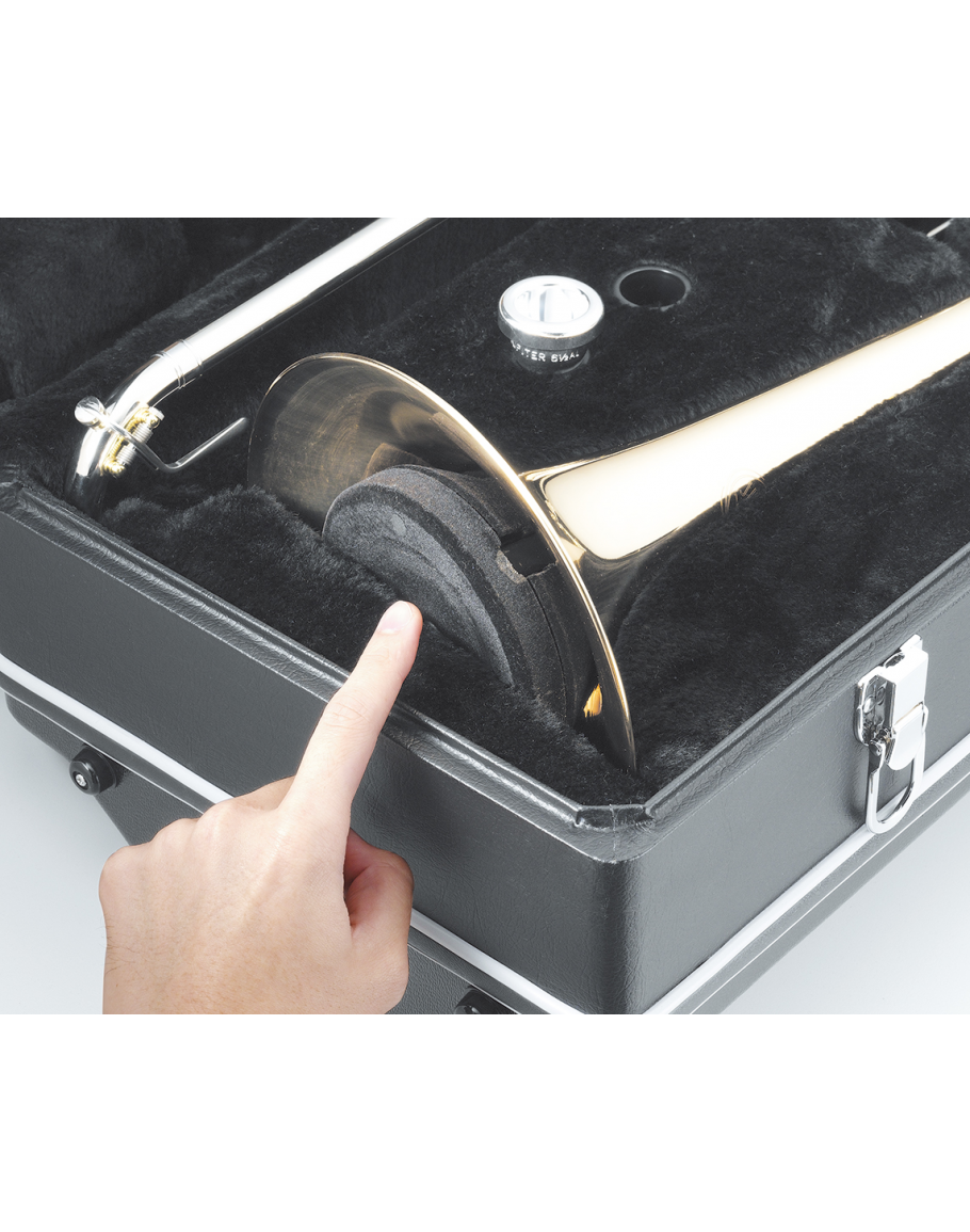 -Design compacto In-Bell permite que o suporte seja armazenado com segurança na campânula do instrumento sem ocupar espaço no estojo do instrumento